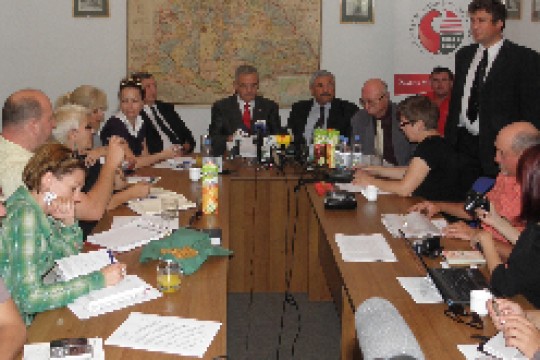 Tőkés László, Lomnici Zoltán és Kincses Előd tartott pénteken sajtótájékoztatót Marosvásárhelyen,...