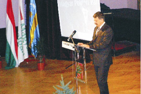 Magyar nyelvű plakátokkal hirdeti előadásait Szlovákia északi, szlovákok lakta régióiban egy olas...