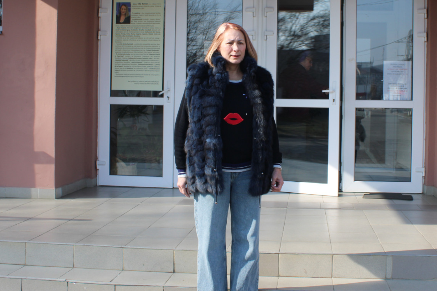 * Kovács Ella a róla elnevezett sportcsarnok előtt (Fotó: Nagy Tibor)