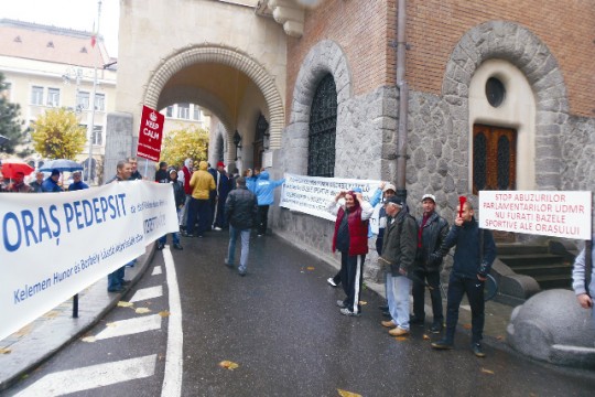 Pénteken sportolókból álló zajos csoport tüntetett a közigazgatási palota előtt, azzal vádolva Kelem...