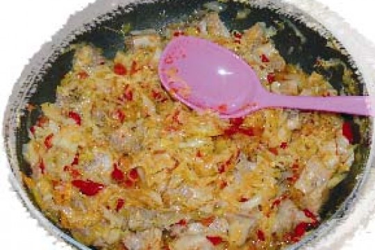 A sertésoldalast enyhén sós vízben puhára főzzük, majd csontjait eltávolítjuk, a húst pedig falat...