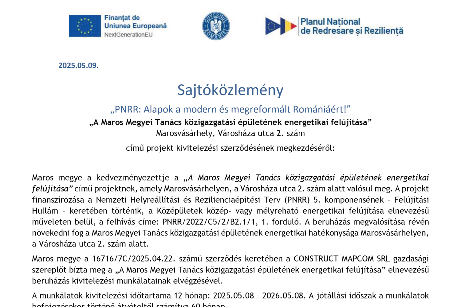 a Maros Megyei Tanács nyilvános rendkívüli ülésének összehívásáról