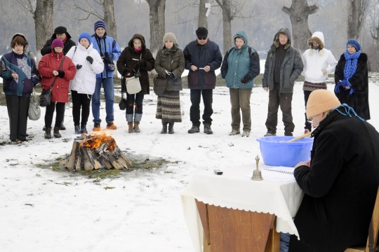 A kínai új év alkalmából egy szűk körű közösség a marosvásárhelyi Sörpatikával szemben, a Maros-p...