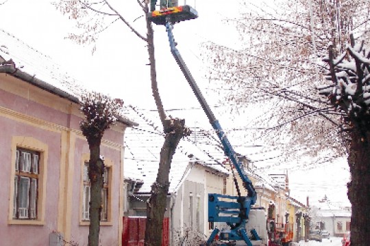 Az „égigérő” fákat is levágják egyszer. Marosvásárhelyen folyik a fák koronaalakító metszése.