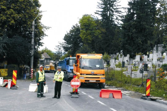 Útjavítás miatt lezárták a forgalom előtt a marosvásárhelyi Papiu utcának a katolikus temető olda...