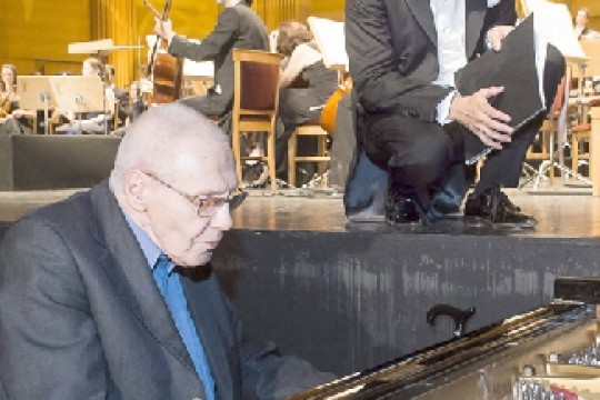 Kurtág György zeneszerző az Orquesta Sinfónica de Euskadi tagjaival tartott próbán a madridi királyi...
