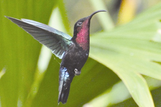 Topázkolibri (Topaza pella); Bíbortorkú kolibri (Eulampis jugularis)