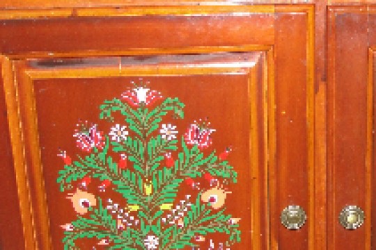 „Nagy öröm számomra, ha festhetek, ha egy érdekes alakú fát találok, és arra viszem rá a magyar népi...