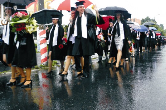 Nagy, fekete ernyők alól hangzott fel mindegyre a Gaudeamus tegnap délelőtt a Marosvásárhelyi Orv...